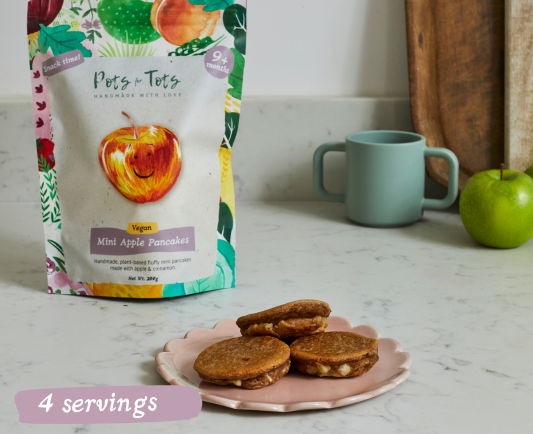 Handmade, plant-based fluffy mini pancakes made with apple & cinnamon. (Contains approx 18-22 pieces per 200g pouch)