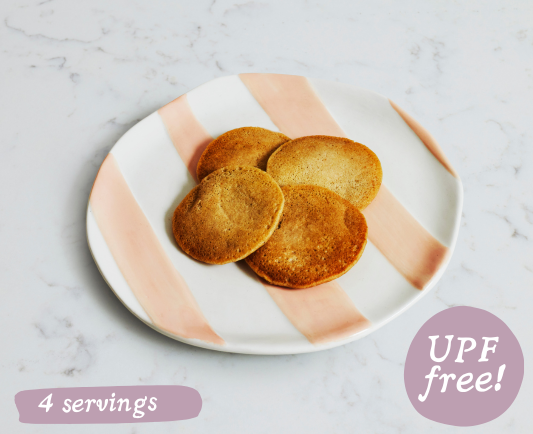 Plant-based fluffy mini pancakes made with banana and oat. (Contains approx 18-22 pieces per 200g pouch)