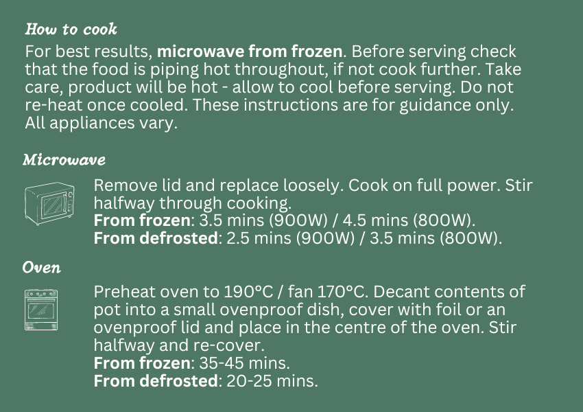 A super tasty & mild warmer packed full of plant goodness. A great source of protein and 3 of their 5 a day.
