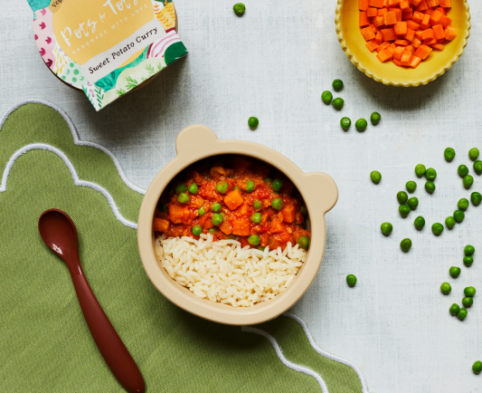 Sweet potato & vegetables in a delicately spiced curry sauce with long-grain rice.