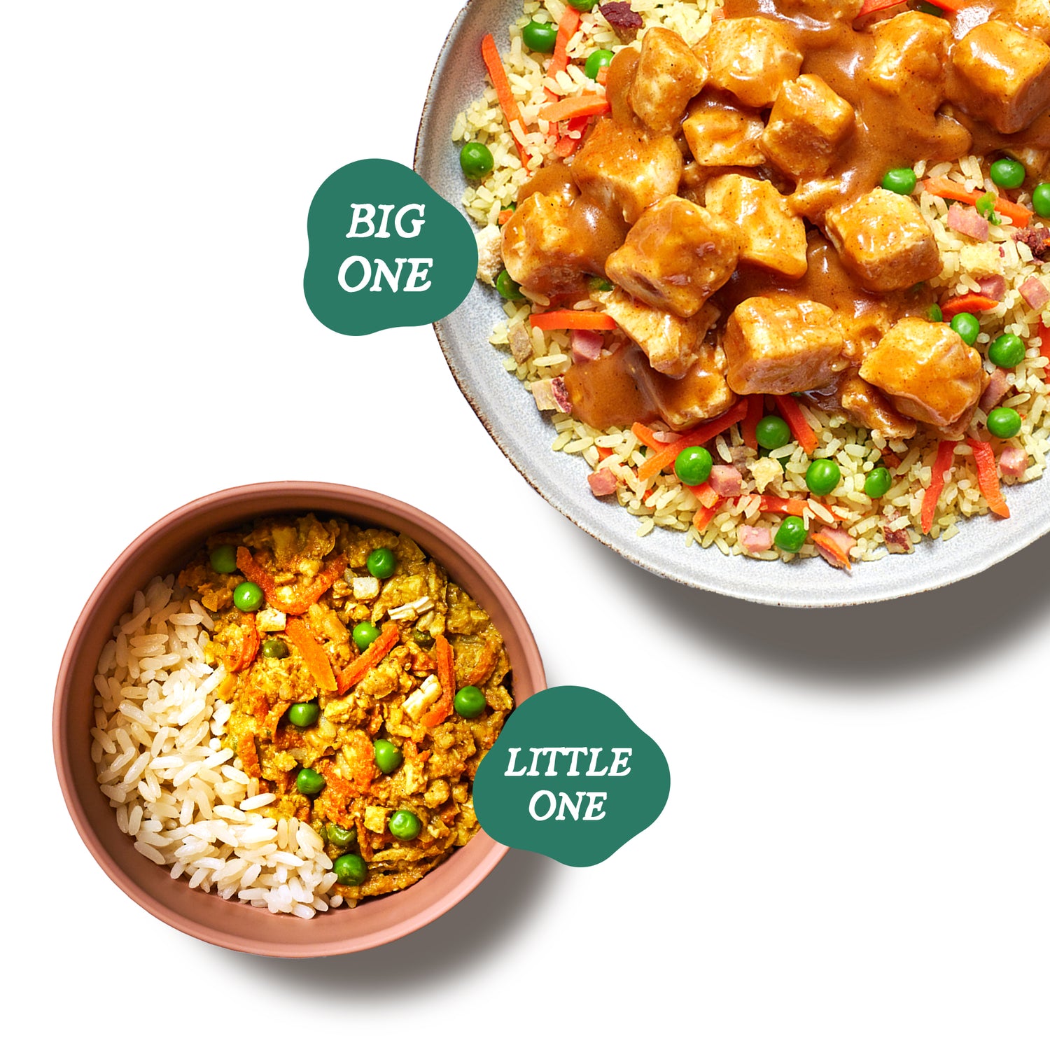 And for the young curry conoseuir: free-range chicken and chickpeas in a thick, creamy korma sauce served with white rice. It contains two of their five a day.