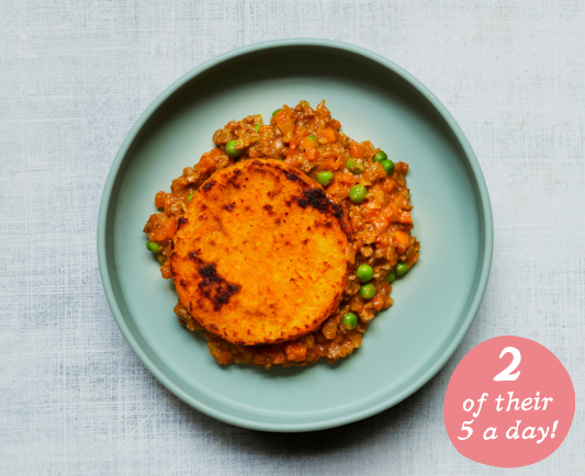 A British beef cottage pie, stuffed with veggies and topped with a sweet potato mash.